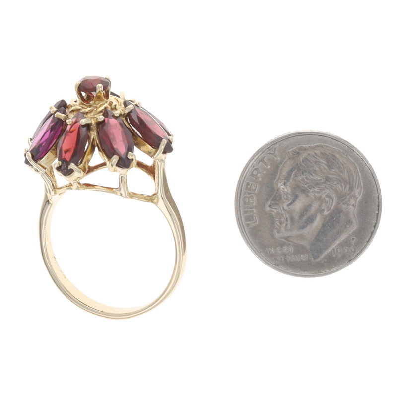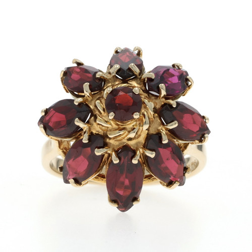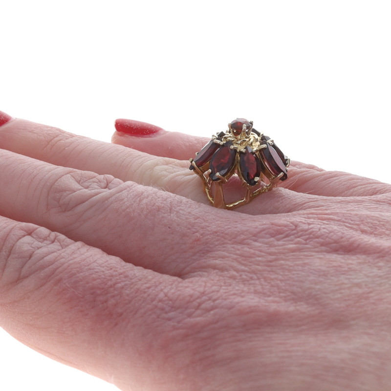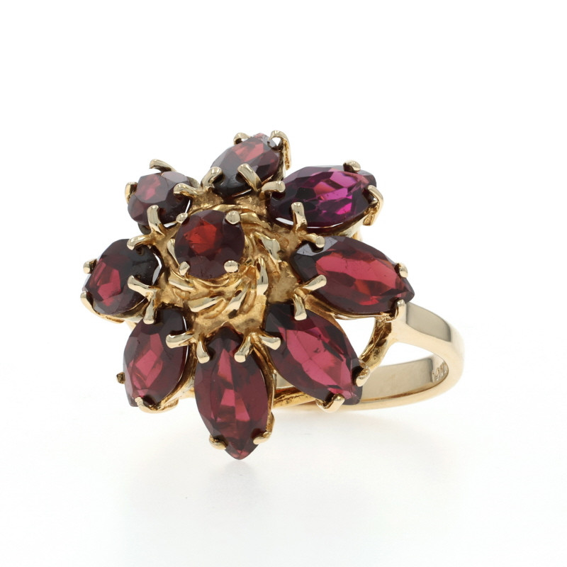 Yellow Gold Garnet Cluster Cocktail Ring - 14k Marquise & Round 5.20ctw Floral