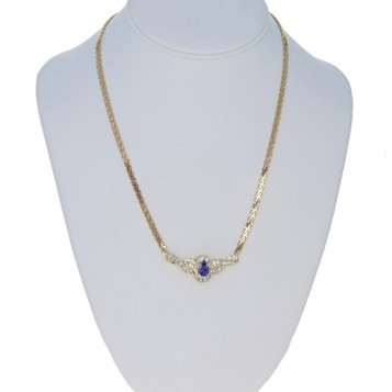 Yellow Gold Garnet Diamond Bow Drop Necklace 17 1/2" 14k Pear 6.17ctw Ribbon