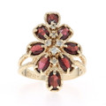 Yellow Gold Garnet Diamond Cluster Cocktail Ring - 10k Oval 1.56ctw Floral