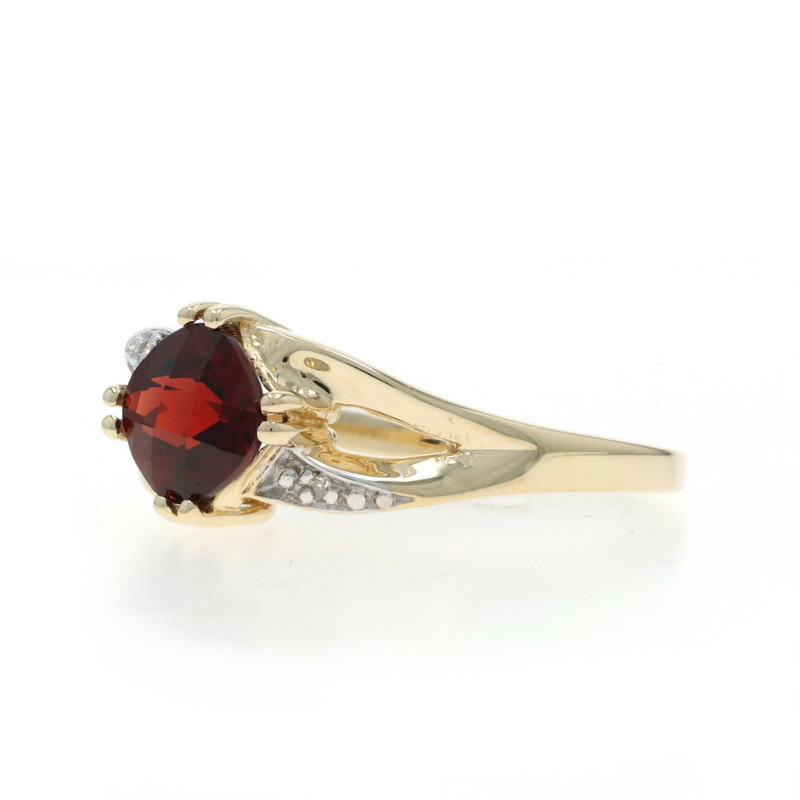 Yellow Gold Garnet Diamond Ring - 10k Cushion Checkerboard 1.10ct