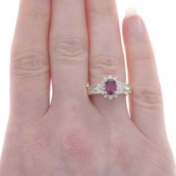 Yellow Gold Garnet Diamond Ring - 14k Oval 2.94ctw
