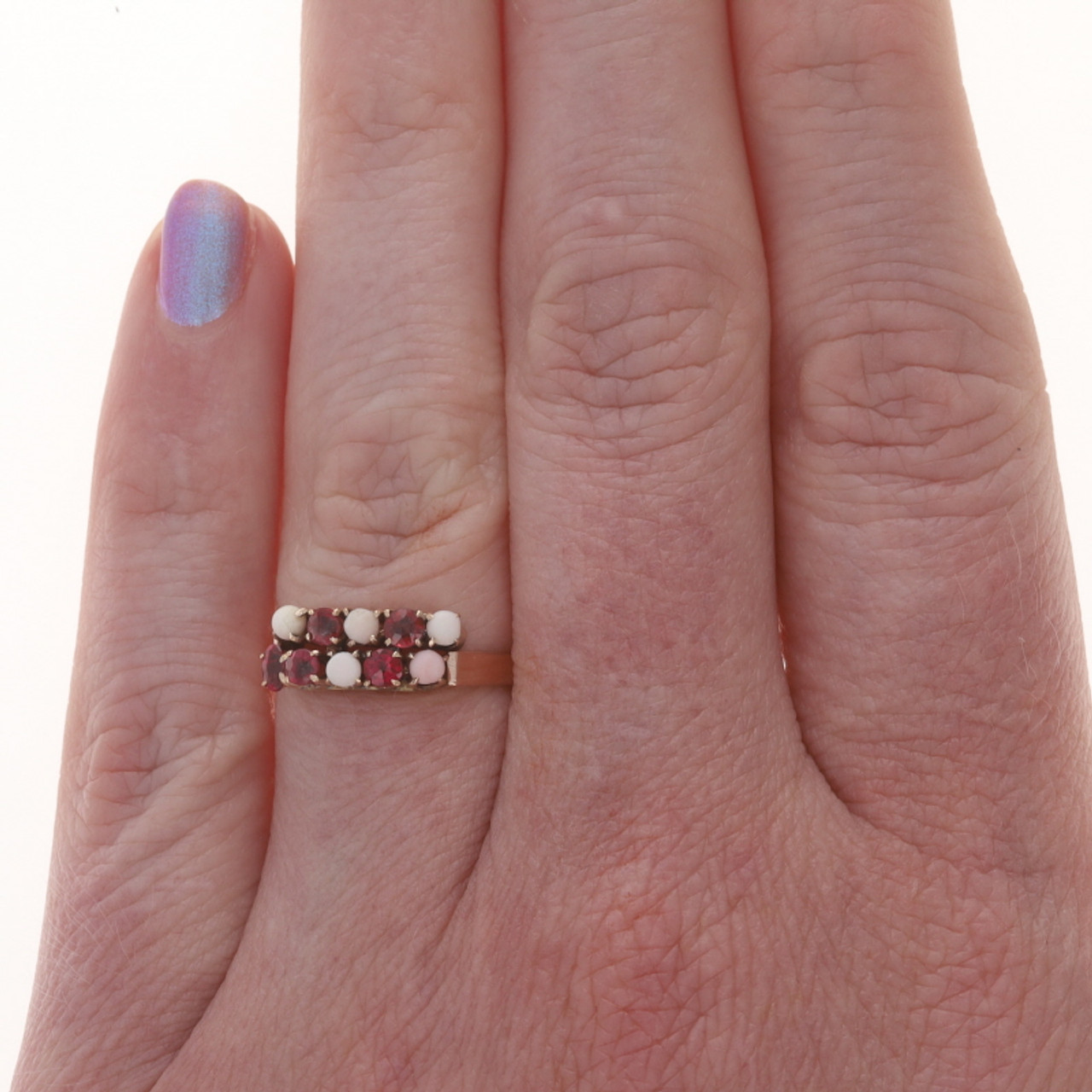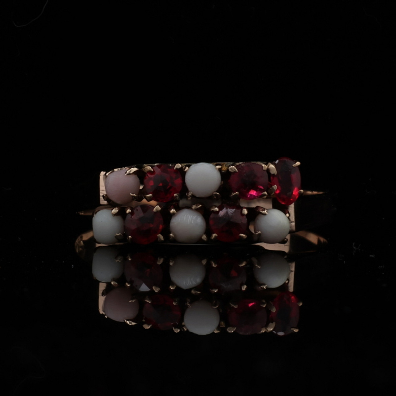 Yellow Gold Garnet/Glass Doublet Pearl Victorian Bypass Band - 10k Antique Ring