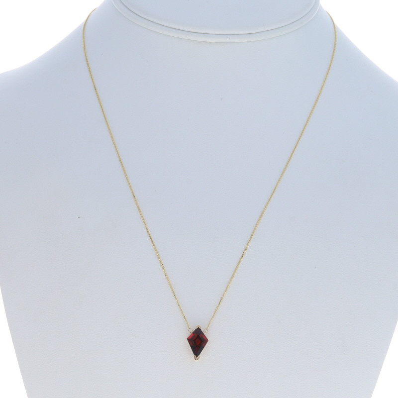 Yellow Gold Garnet Solitaire Pendant Necklace 18 1/2" 14k Kite 2.55ct Adjustable