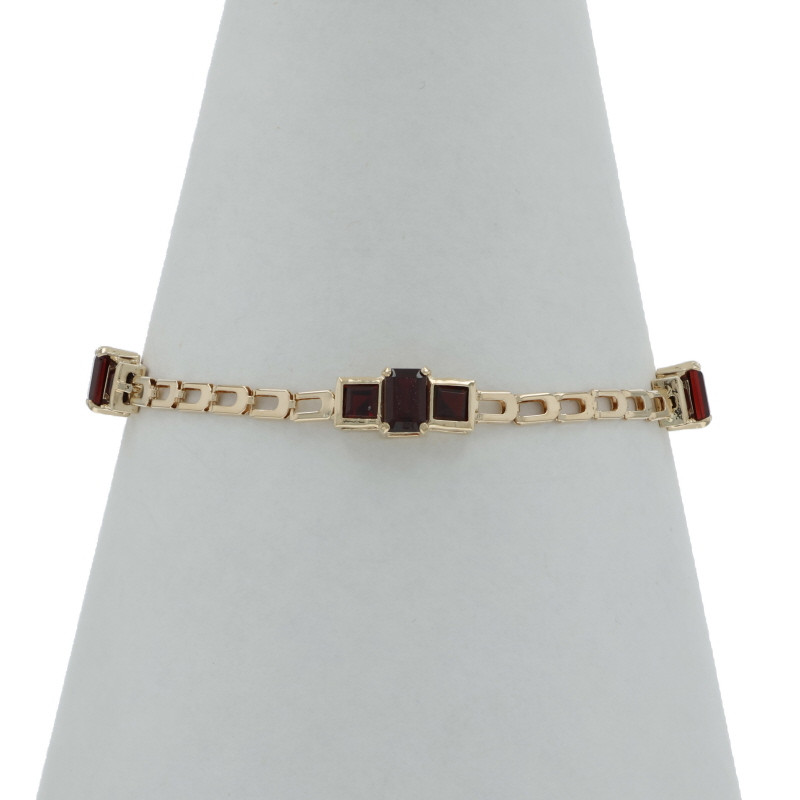 Yellow Gold Garnet Station Bracelet 7" -14k Emerald & Square 4.50ctw Fancy Chain