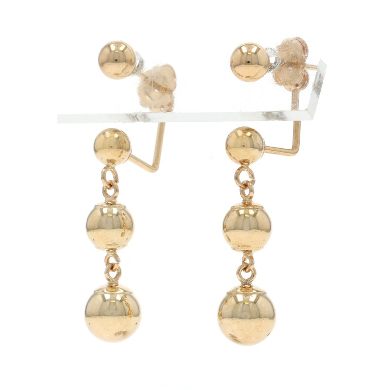 Yellow Gold Graduated Bead Front-Back Dangle Earrings - 14k Pierced