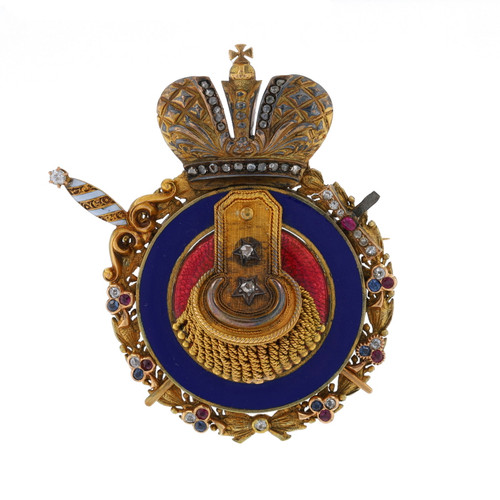 Yellow Gold Imperial Russian Military Epaulette Jetton Badge 14k Diamond Pin