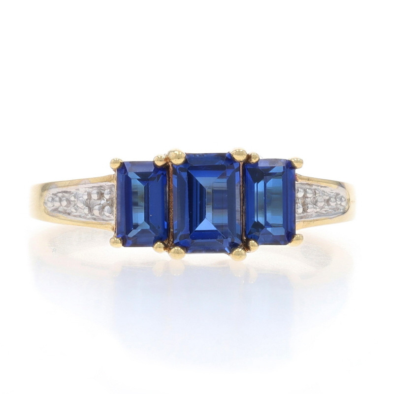 Yellow Gold Lab-Created Sapphire Diamond Three-Stone Ring - 10k Emerald 3.75ctw