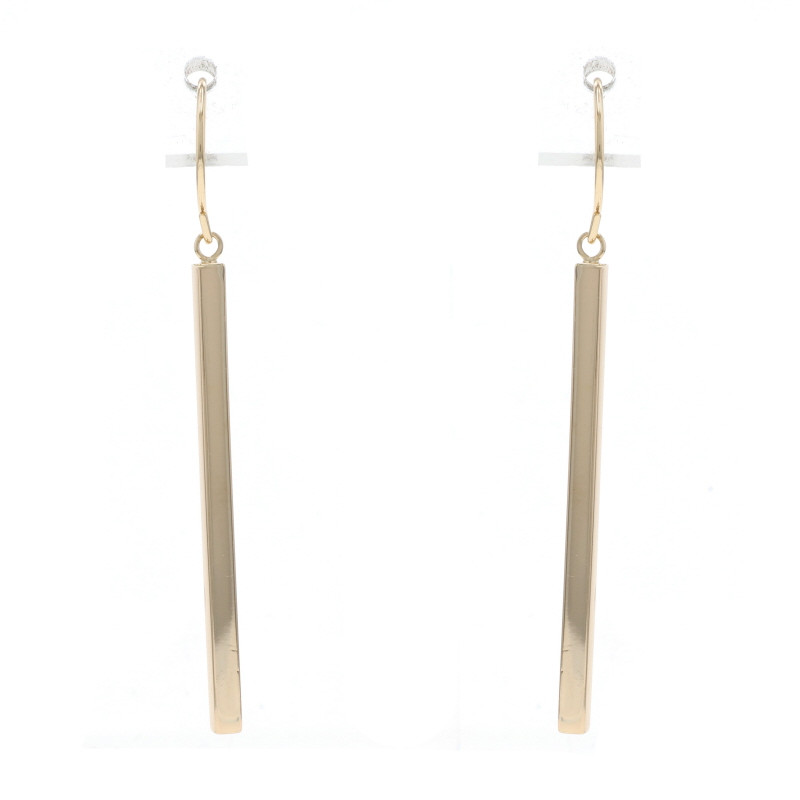 Yellow Gold Line Bar Dangle Earrings - 10k Pierced