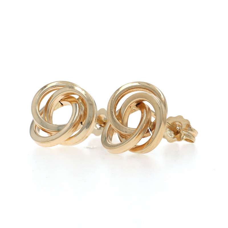 Yellow Gold Love Knot Stud Earrings - 14k Triple Circle Pierced