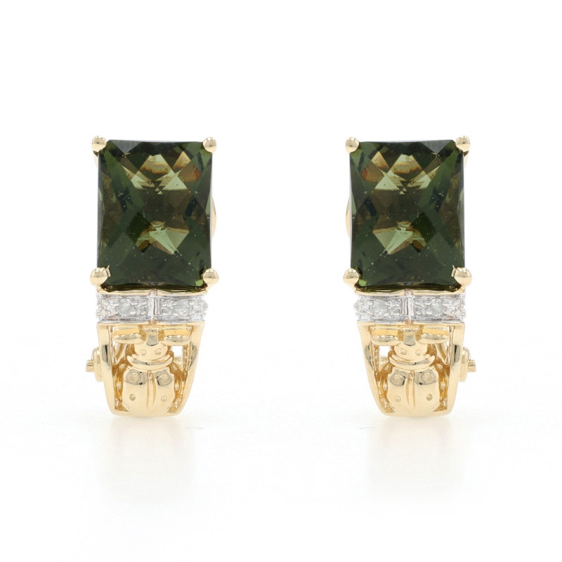 Yellow Gold Moldavite Diamond J-Hoop Earrings 10k Rectangular 8.22ctw Pierced
