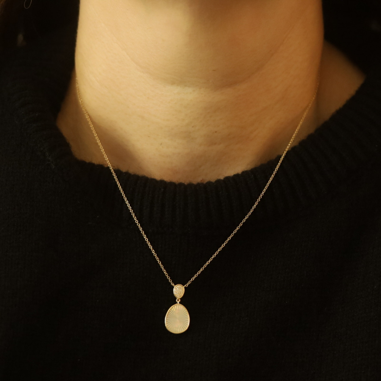 Yellow Gold Mother of Pearl Diamond Starburst Pendant Necklace 17 3/4" 14k