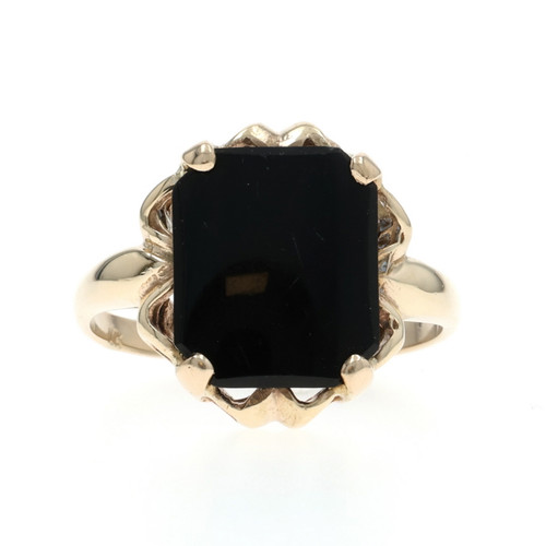 Yellow Gold Onyx Vintage Solitaire Cocktail Ring 10k