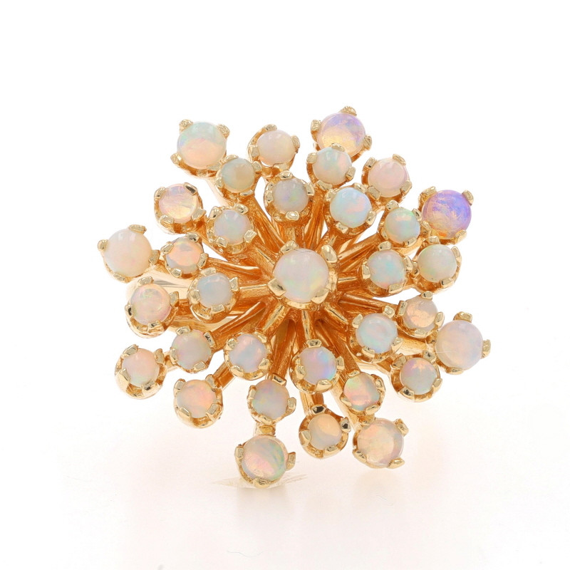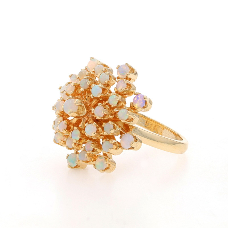 Yellow Gold Opal Cluster Cocktail Ring - 14k Round Cabochon 2.45ctw Floral Snowflake