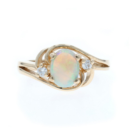 Yellow Gold Opal Diamond Bypass Ring 14k Oval Cabochon .80ctw