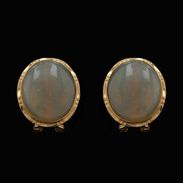 Yellow Gold Opal & Diamond Halo Stud Earrings 14k Round Cabochon 1.06ctw Pierced