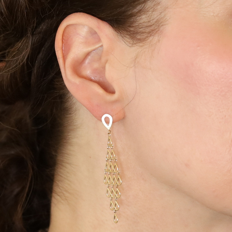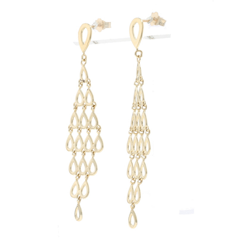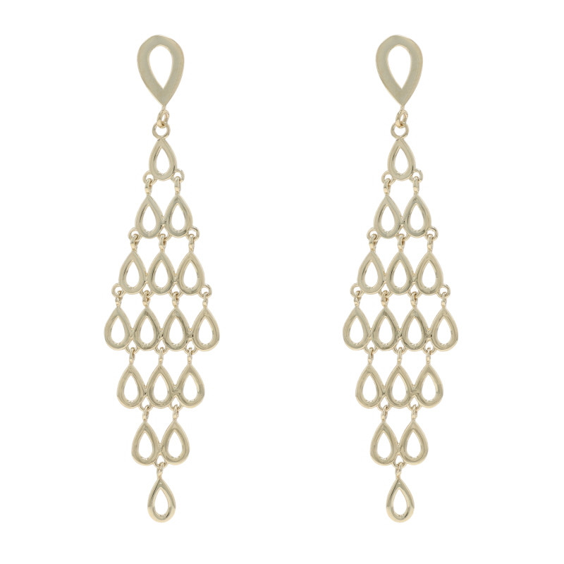 Yellow Gold Open Teardrop Chandelier Earrings - 14k Pierced