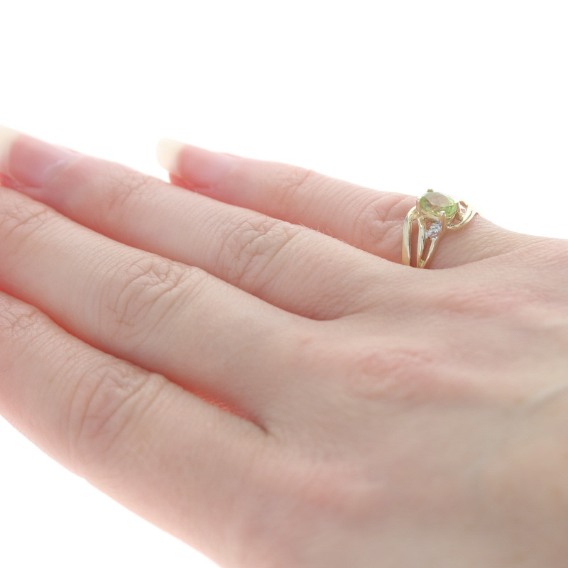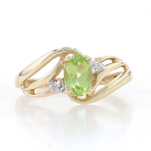 Yellow Gold Peridot & Diamond Bypass Ring - 10k Oval .50ct