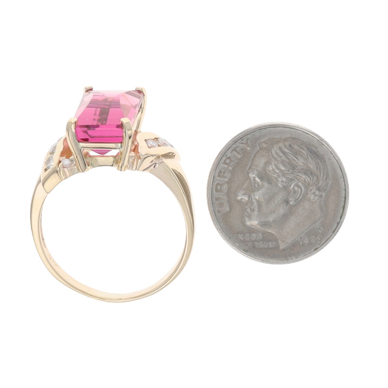 Yellow Gold Pink Tourmaline Diamond Bypass Ring - 14k Rectangular Barrel 4.93ctw