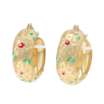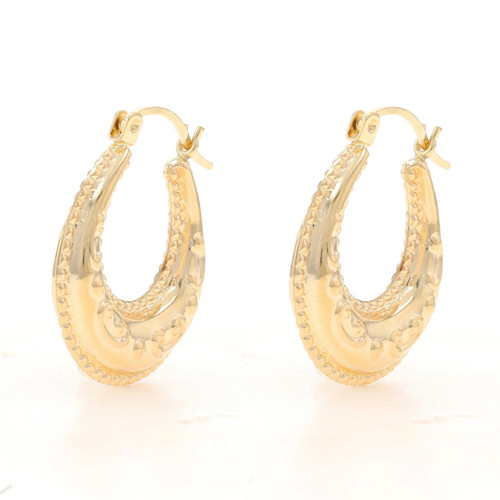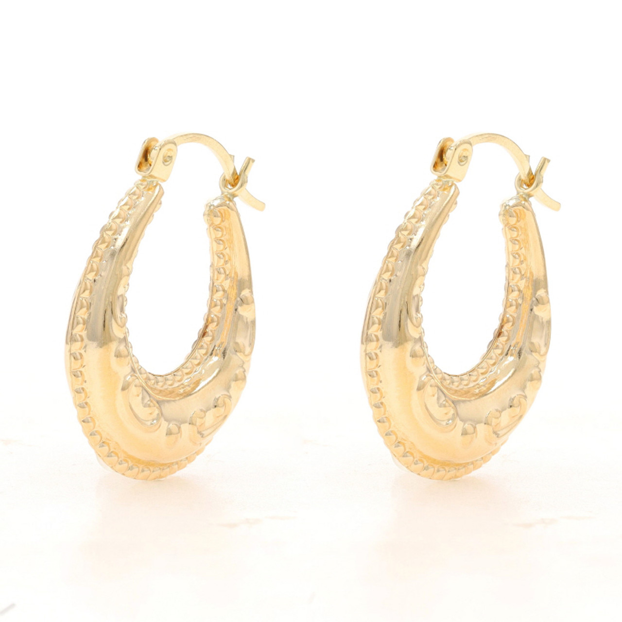 Yellow Gold Puffy Hoop Earrings 14k Scalloped Milgrain Pierced