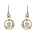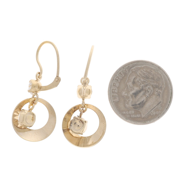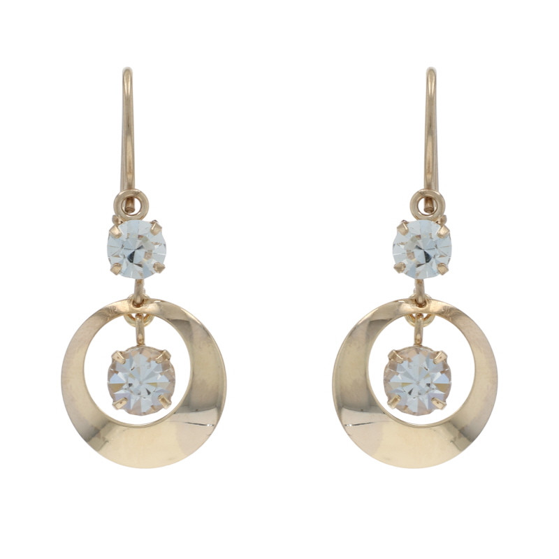 Yellow Gold Rhinestone Vintage Circle Dangle Earrings - 10k Pierced
