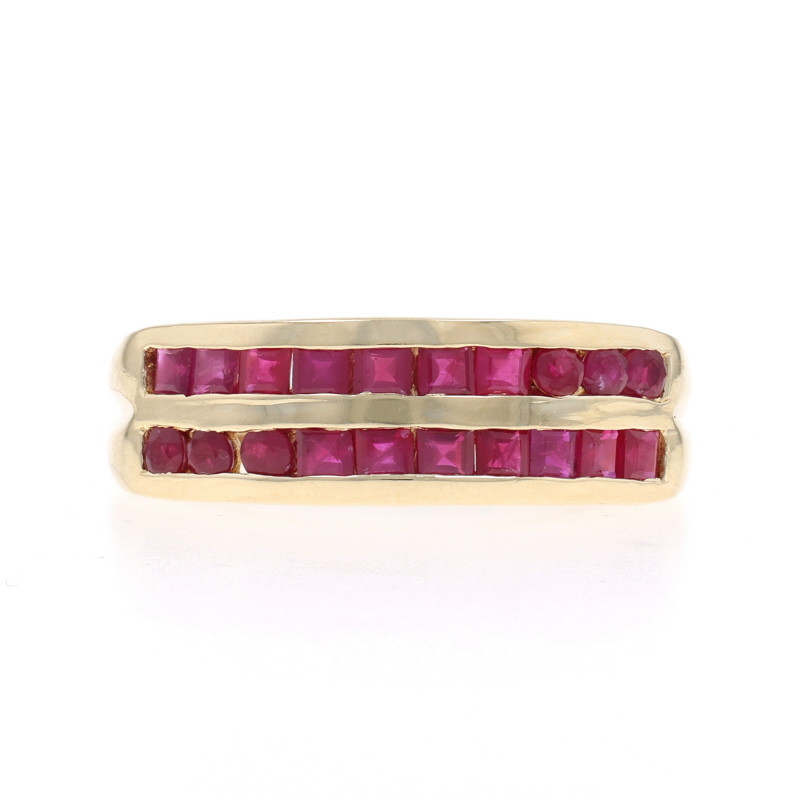 Yellow Gold Ruby Band - 14k Square & Round 1.40ctw Stripes Channel Set Stones