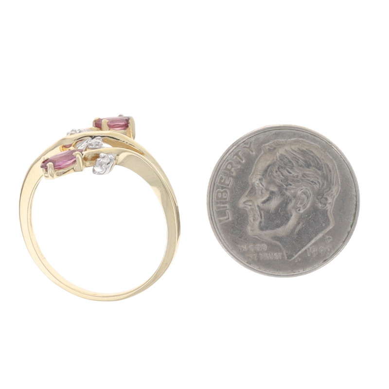 Yellow Gold Ruby Diamond Bypass Ring - 14k Marquise .42ctw Two-Stone