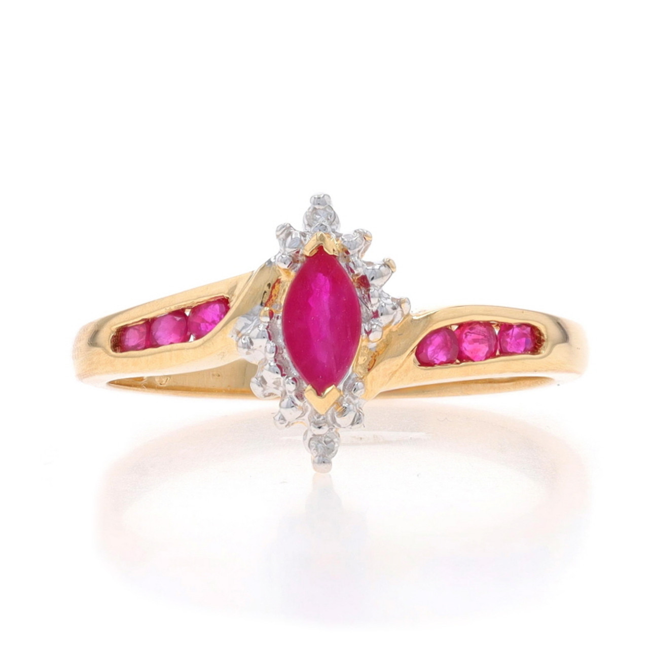 Yellow Gold Ruby Diamond Bypass Ring - 14k Marquise & Round 2.54ctw