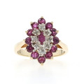 Yellow Gold Ruby Diamond Cluster Cocktail Halo Ring - 10k Marquise & Rd 1.64ctw