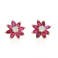 Yellow Gold Ruby Diamond Flower Halo Stud Earrings -14k Marquise 4.16ctw Pierced