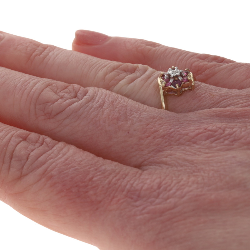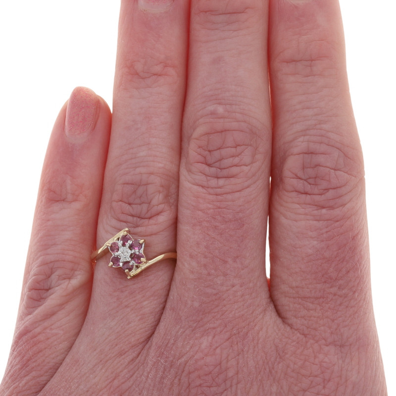 Yellow Gold Ruby Diamond Halo Bypass Ring - 10k Round .31ctw Floral