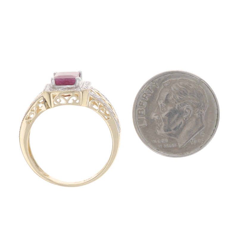 Yellow Gold Ruby Diamond Halo Ring - 14k Emerald Cut 1.25ctw Lattice