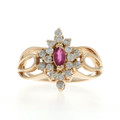 Yellow Gold Ruby Diamond Halo Ring - 14k Marquise .85ctw Floral