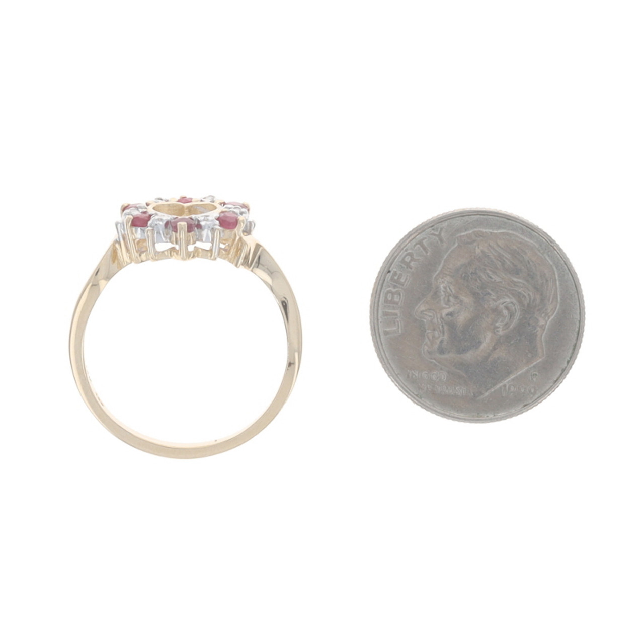 Yellow Gold Ruby Diamond Heart Bypass Ring - 14k Round .33ctw Love Wreath