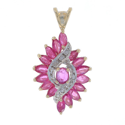 Yellow Gold Ruby & Diamond Pendant - 10k Oval & Marquise 2.10ctw Swirl