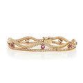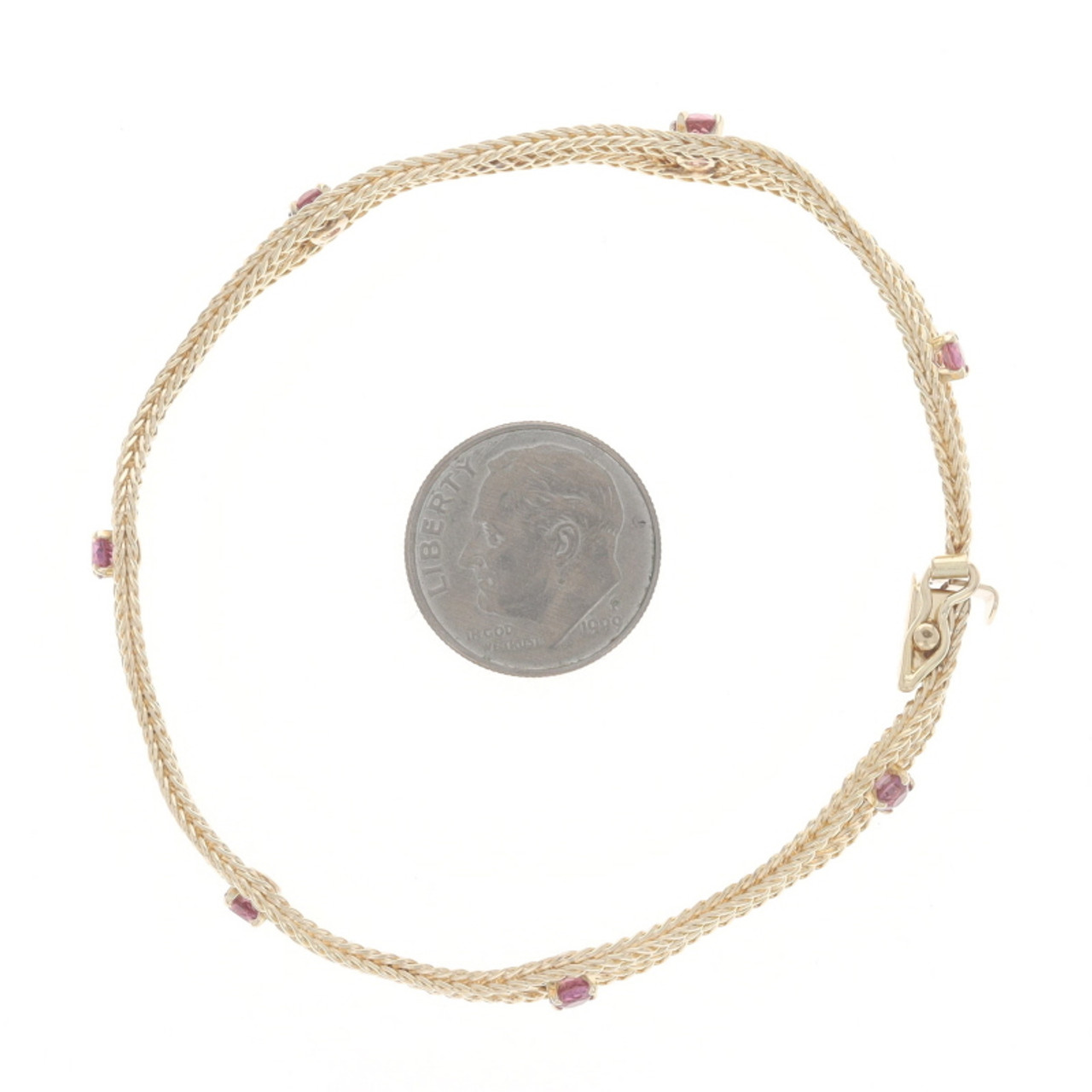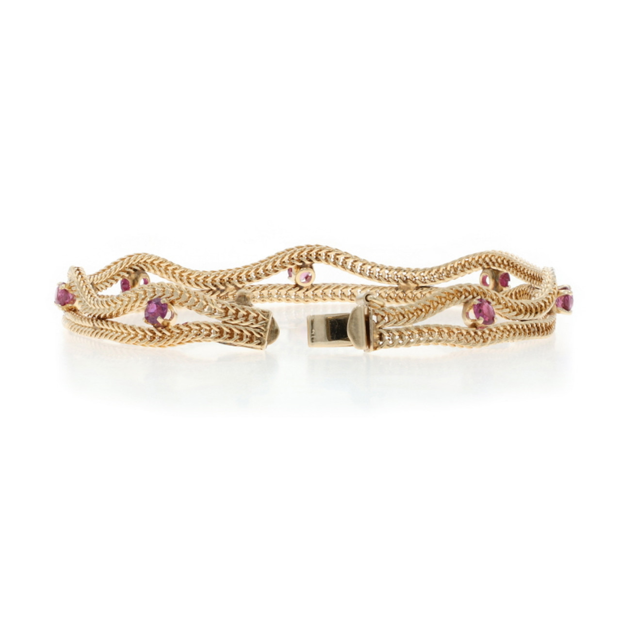Yellow Gold Ruby Foxtail Fancy Chain Bracelet 7 1/4" 14k Round 1.54ctw