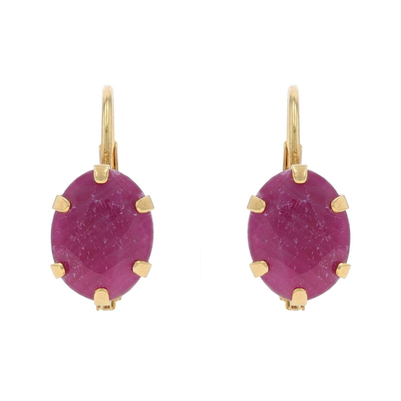 Yellow Gold Ruby Solitaire Drop Earrings 14k Oval 3.00ctw Pierced