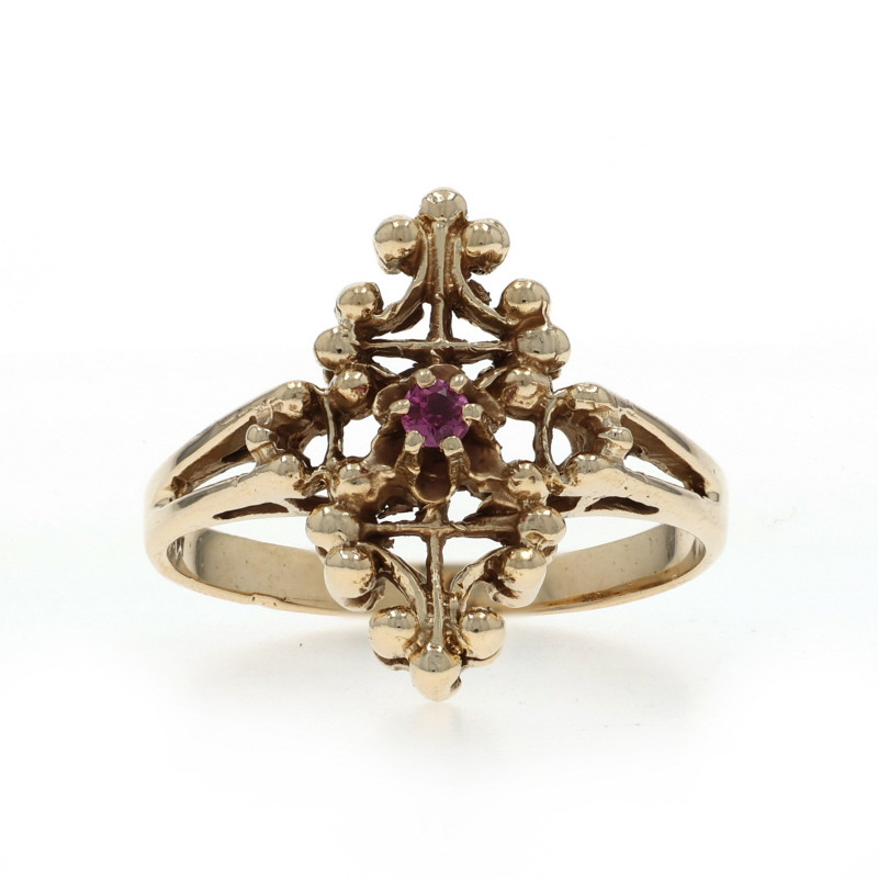 Yellow Gold Ruby Vintage Solitaire Ring - 14k Round Scrollwork