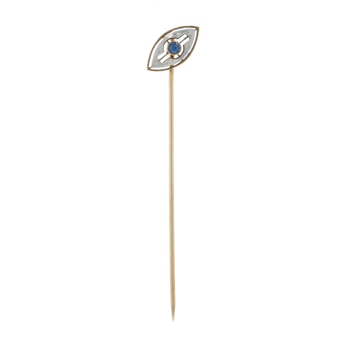 Yellow Gold Sapphire Art Deco Stickpin - 14k Round .16ct Vintage Eye