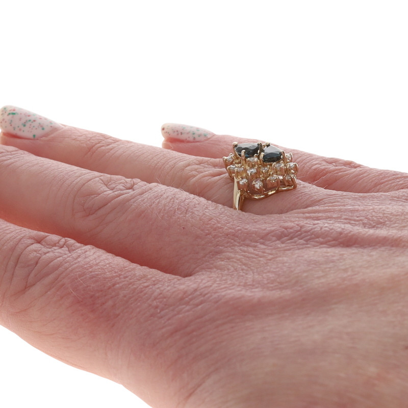 Yellow Gold Sapphire Diamond Bypass Ring - 14k Pear 1.30ctw Two-Stone