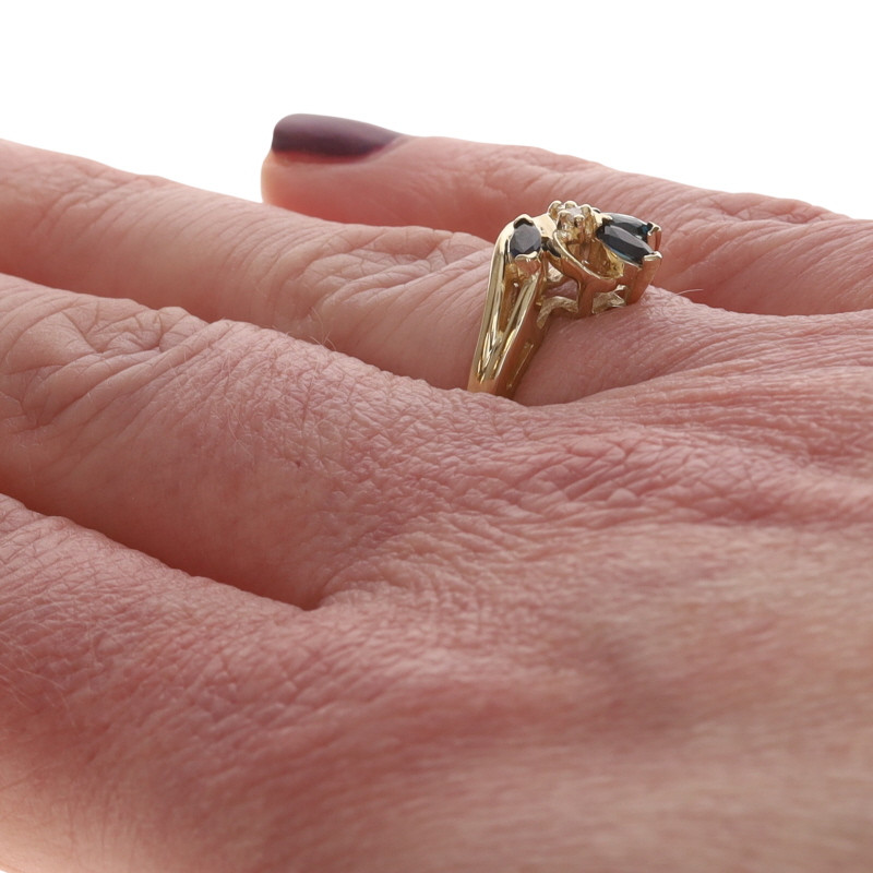 Yellow Gold Sapphire Diamond Cluster Bypass Ring - 10k Marquise .47ctw Floral