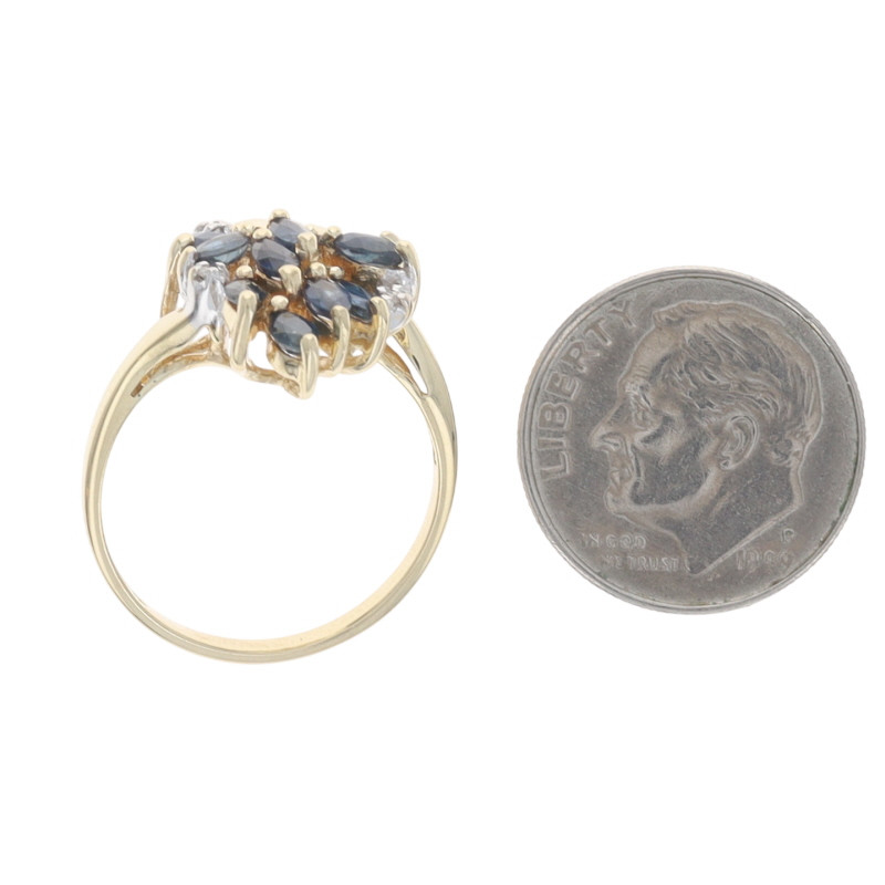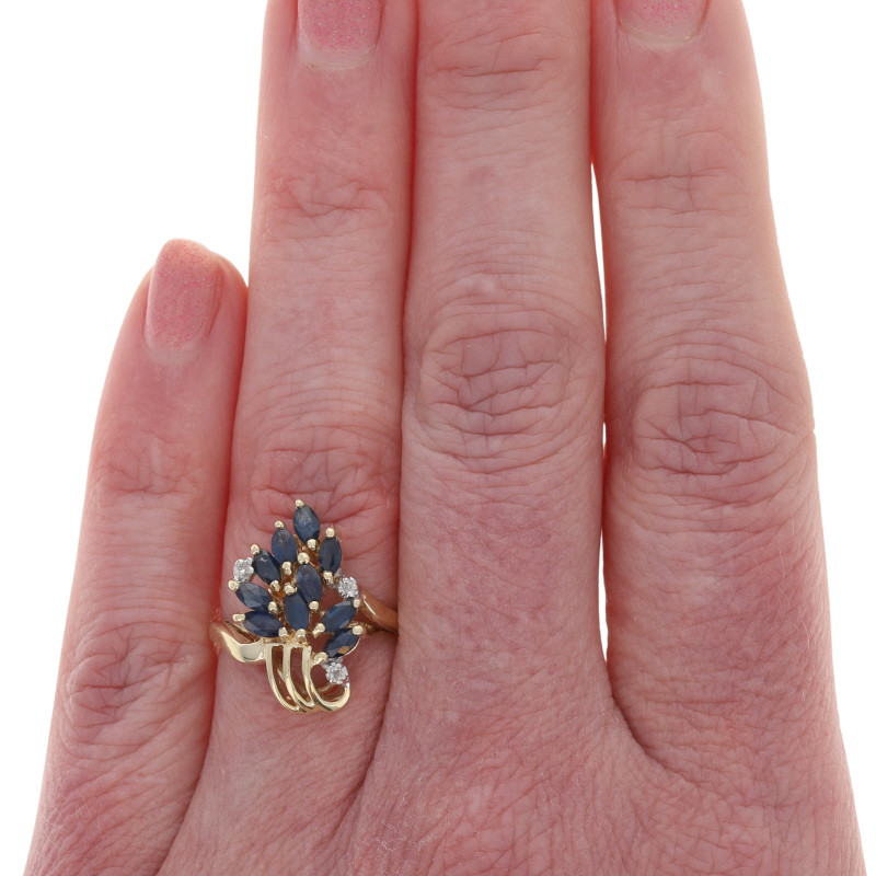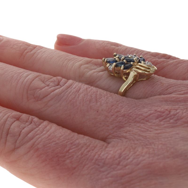 Yellow Gold Sapphire Diamond Cluster Cocktail Bypass Ring - 10k Marquise .83ctw
