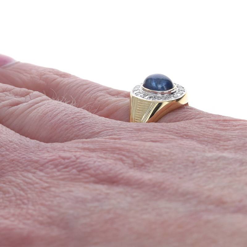 Yellow Gold Sapphire Diamond Halo Ring - 18k Oval Cabochon 1.26ctw