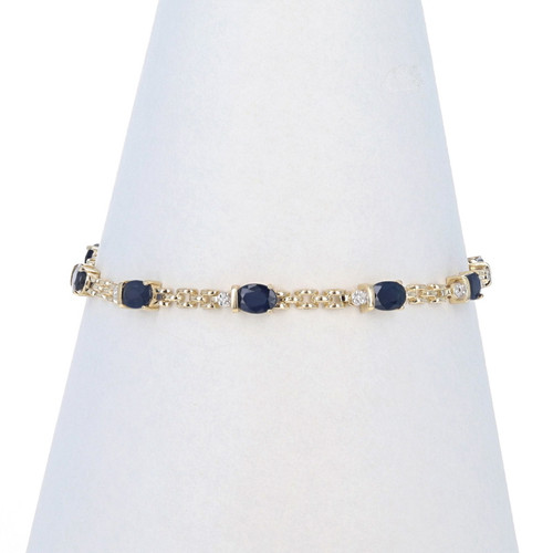 Yellow Gold Sapphire Diamond Link Bracelet 7 1/4" - 14k Oval 5.85ctw