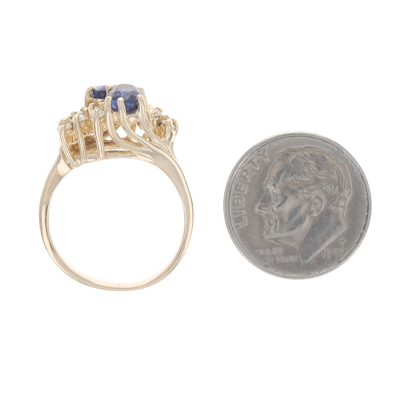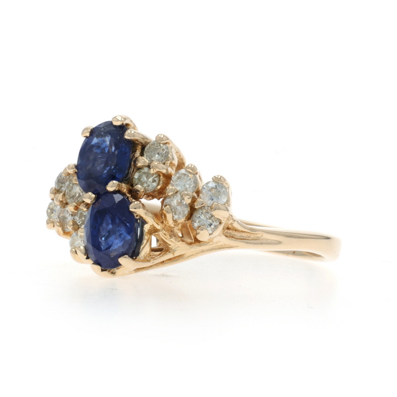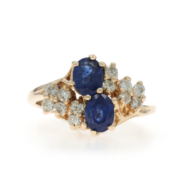Yellow Gold Sapphire Diamond Ring - 14k Oval 1.40ctw Two-Stone Bypass