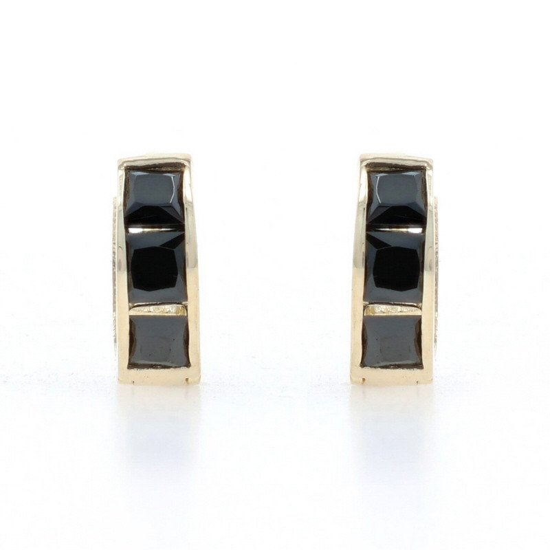 Yellow Gold Sapphire Three-Stone Huggie Hoop Earrings 10k Square .66ctw Pierced