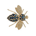 Yellow Gold Sapphire Vintage Fly Brooch - 14k Round 1.26ctw Insect Pin