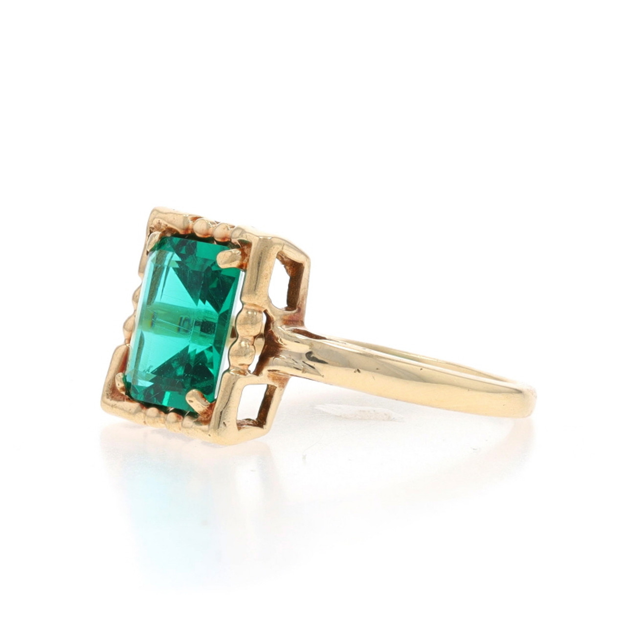 Yellow Gold Simulated Emerald Cocktail Solitaire Ring - 10k