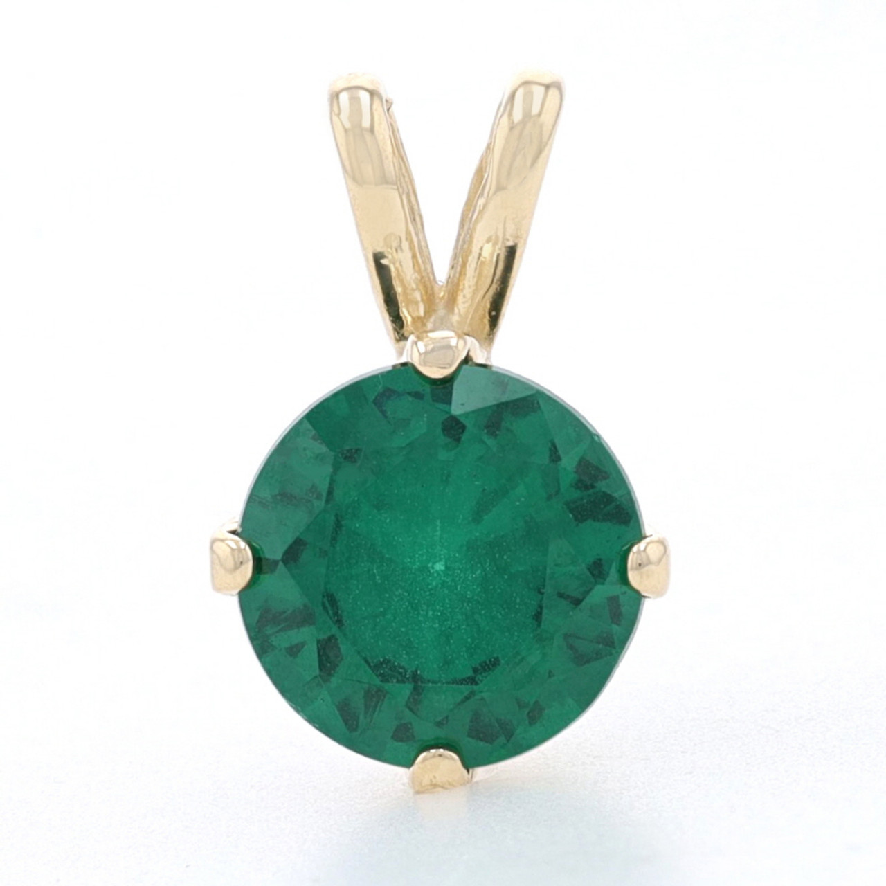 Yellow Gold Simulated Emerald Solitaire Pendant - 14k Round