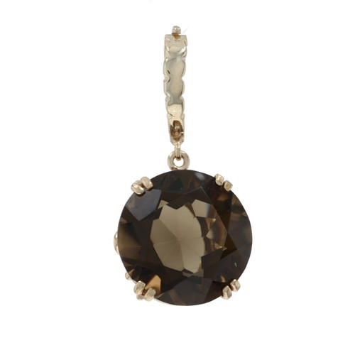 Yellow Gold Smoky Quartz Solitaire Enhancer Pendant - 14k Round 21.50ct