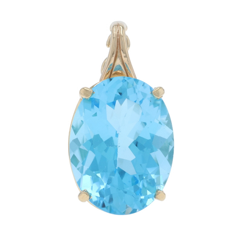 Yellow Gold Swiss Blue Topaz Solitaire Pendant - 14k Oval 19.90ct